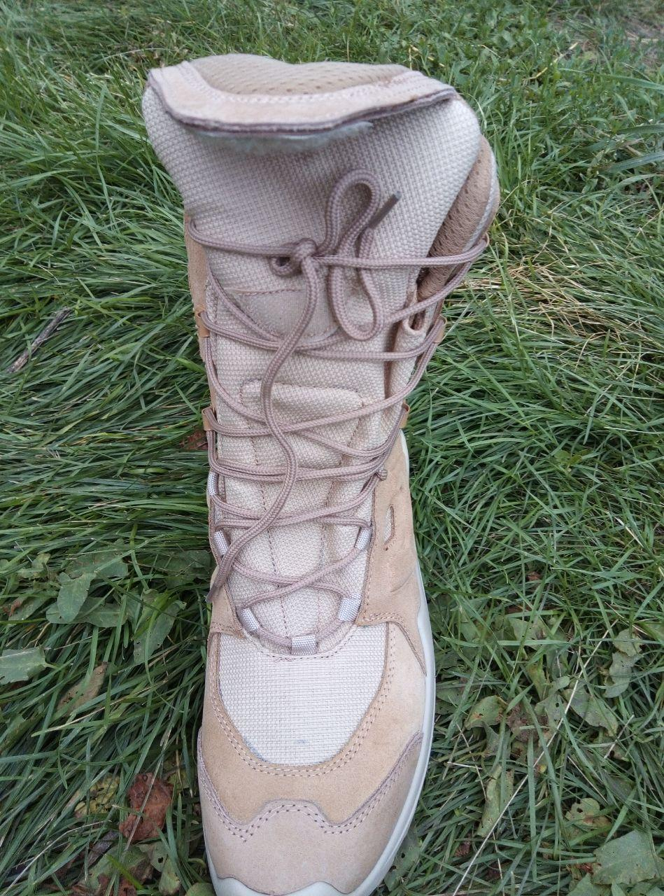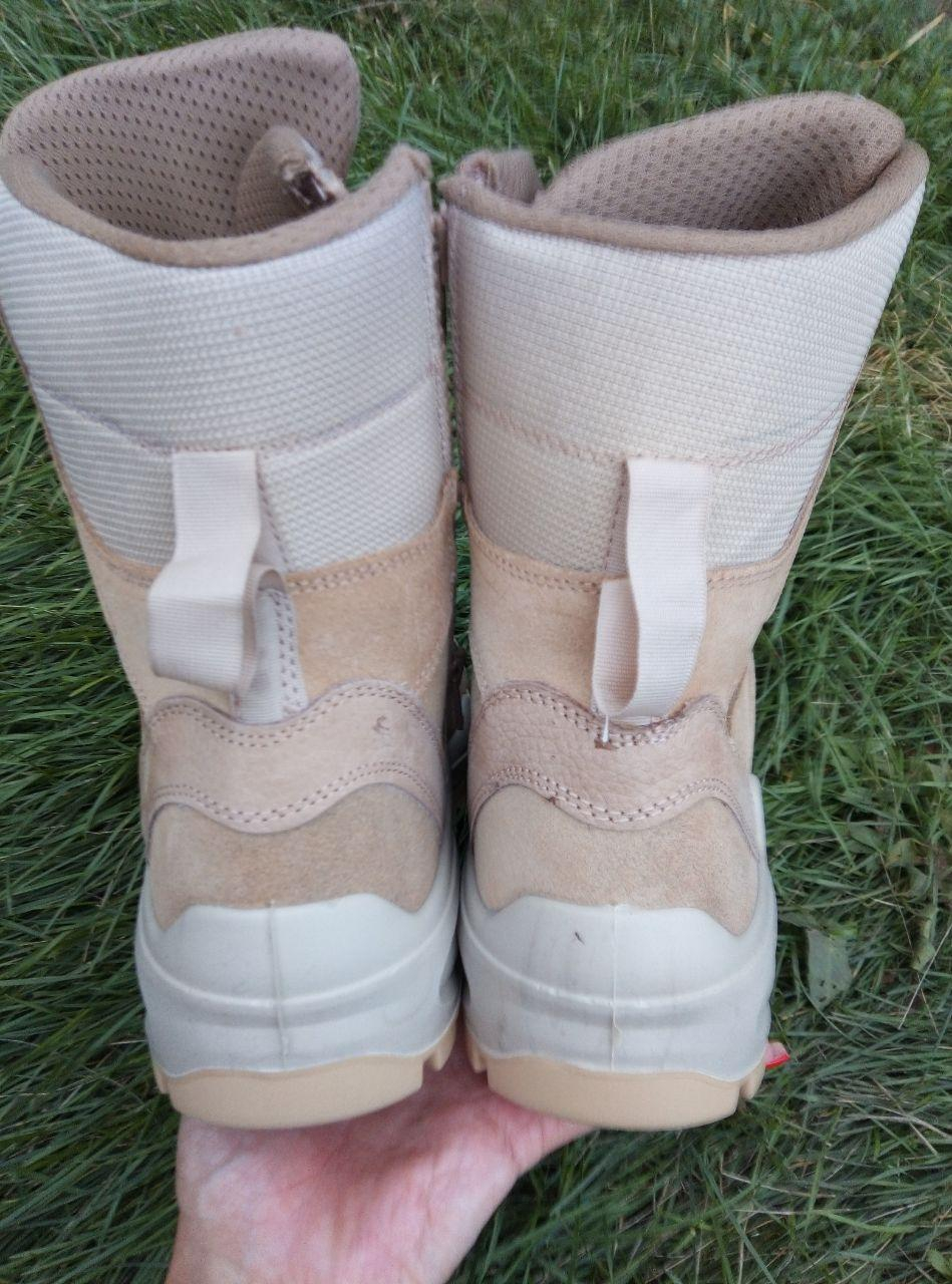 Матеріал верху - гідрофобний нубук. Вставка -кордура. Підкладка - дихаюча мембрана, що затримує вологи всередині. Високий рівень повітряпроникності. Колір КойОТ.. Підошва-Пу, антиковзаюча. Анатомічна устілка. Зміцнений носок. .Розміри 41-45. Виробник Туреччина.