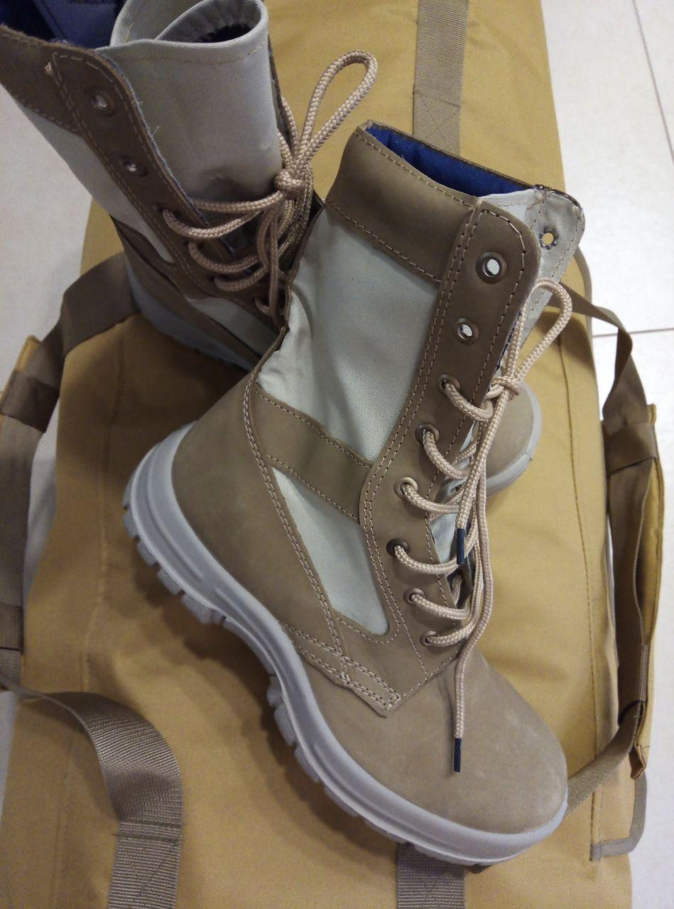 Черевики з високими берцями літні з натуральної шкіри Нубук і повітропроникного матеріалу Cordura, з настройкими берцями, з глухим клапаном, на шнурках. Підкладка з ХБ матеріалу, вставна устілка з ефектом амортизації, з матеріалу ЕВА. Жорсткий закаблук, термопластичний підносок (надмір. 2 мм). Підошва з поліуретану підвищеної зносостійкості, з властивостями МБС. t експлуатації — 15 +90 С. Розмірний ряд 36-47.