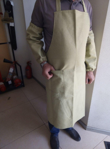 Фартух із нагрудником з ВОГНЕСТІЙКОІ ПАРУСИНИ, 100% бавовна, щільн. 390 гм2 , використовується для роботи на гарячих виробництвах, зокрема для захисту зварника від іскор і бризок розпеченого металу. Довжина виробу 97 см. (нижче коліна) Є бічна кишеня. Колір БЕЖЕВИЙ.