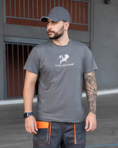 Футболка бавовняна СІРА(графіт) з вишивкою ХАРКІВ НЕЗЛАМНИЙ+герб міста, р.S
