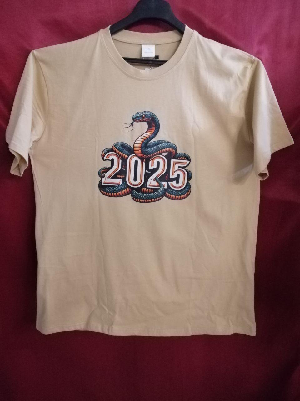 Футболка чоловіча бавовняна БІЖЕВА, з символом 2025 року (ЗМІЯ) р. 60(5/6)