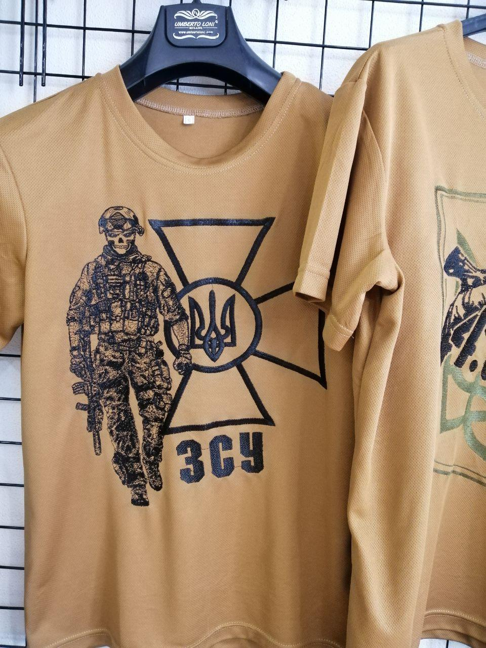 Футболка чоловіча з коротким рукавом. Має анатомічний крій (приталена) . Виготовлена з тканини з повітропроникною основою CoolMax — синтетичний матеріал, спеціально розроблений для тактичного одягу в літню пору року, що швидко сохне потовідвідний, стійкий до запаху. Чудово продувається і відводить вологу, за структурою схожий на дрібну сітку. Склад 100% пе, пл.160 гм2. На грудях методом ВИШИВКИ, виготовлений малюнок ВОЇНА ЗСУ на фоні хреста з тризубом.