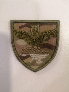 Кокарда ПОЛІЦІЯ ОСОБЛИВОГО ПРИЗНАЧЕННЯ на мультикамі р. 5 х 5.5 см