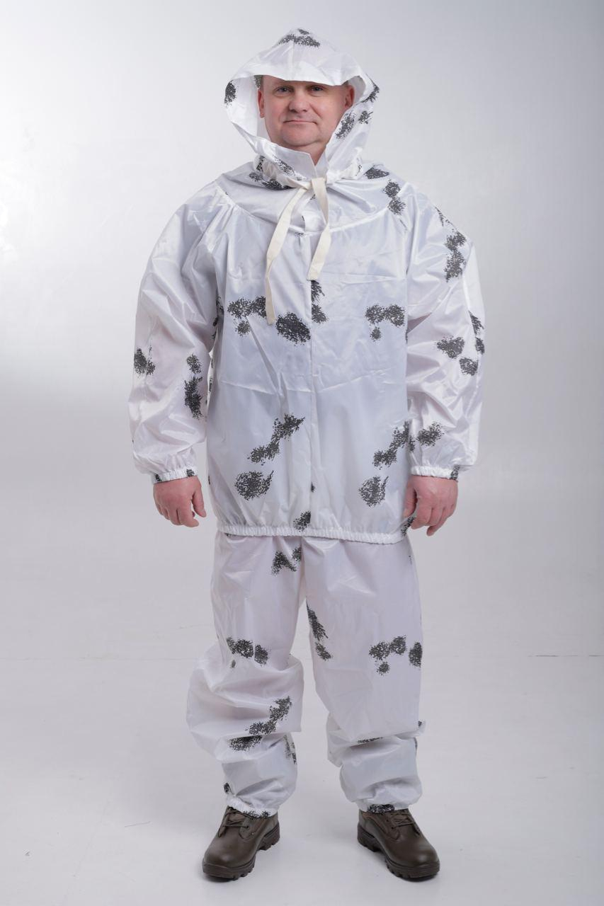 Костюм складається з куртки та штанів, виконує функцію маскування в зимову пору року. Одягається поверх основного одягу. Виготовлений із тК.ОКСФОРД, пл. 130 гм2, з водостійким просоченням. Куртка сорочкового крою, одягається через голову, має зручний капюшон, пристосований до різних головних уборів і шоломів. Об'єм регулюється зав'язками. Рукав на еластичному манжеті. Штани енергономічного крою, пояс і низ штанів на гумці.