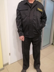 Костюм складається з куртки та штанів. Застібка-блискавка + захисний клапани на липучці. На грудях дві великі кишені з клапанами. Бічні кишені-листочки. Пояс куртки на гумці з боків. Комір — відкладний. . Штани класичного крою, з двома внутрішніми бічними кишенями та двома накладними об'ємними кишенями з боків штанин. У доповненні з чорною футболкою, бейсболкою та брючним ременем представляє завершений образ охоронця.