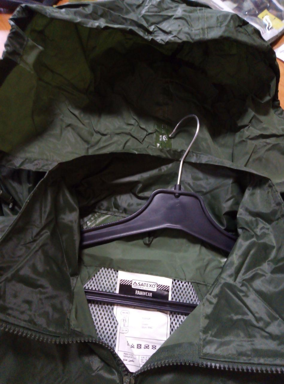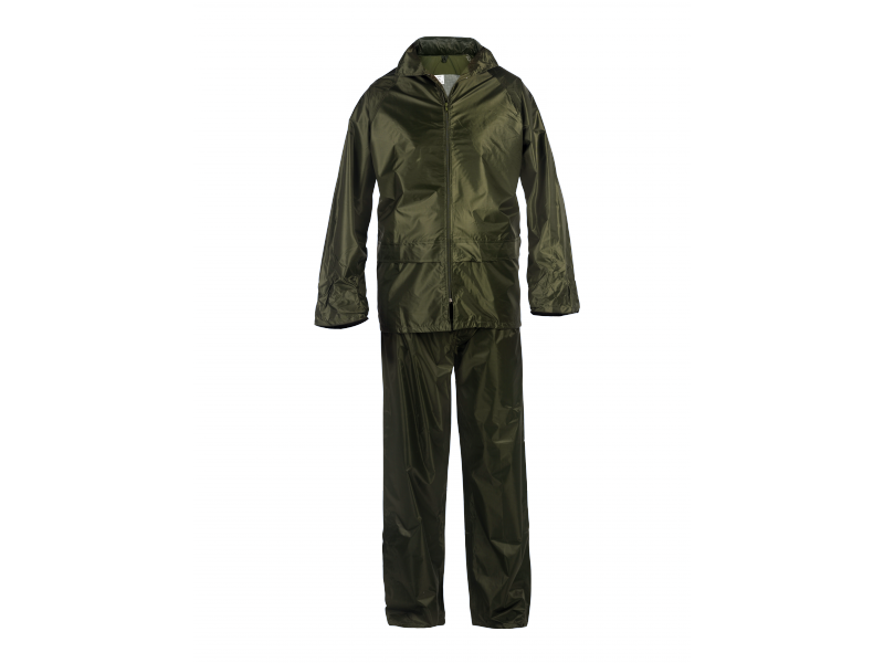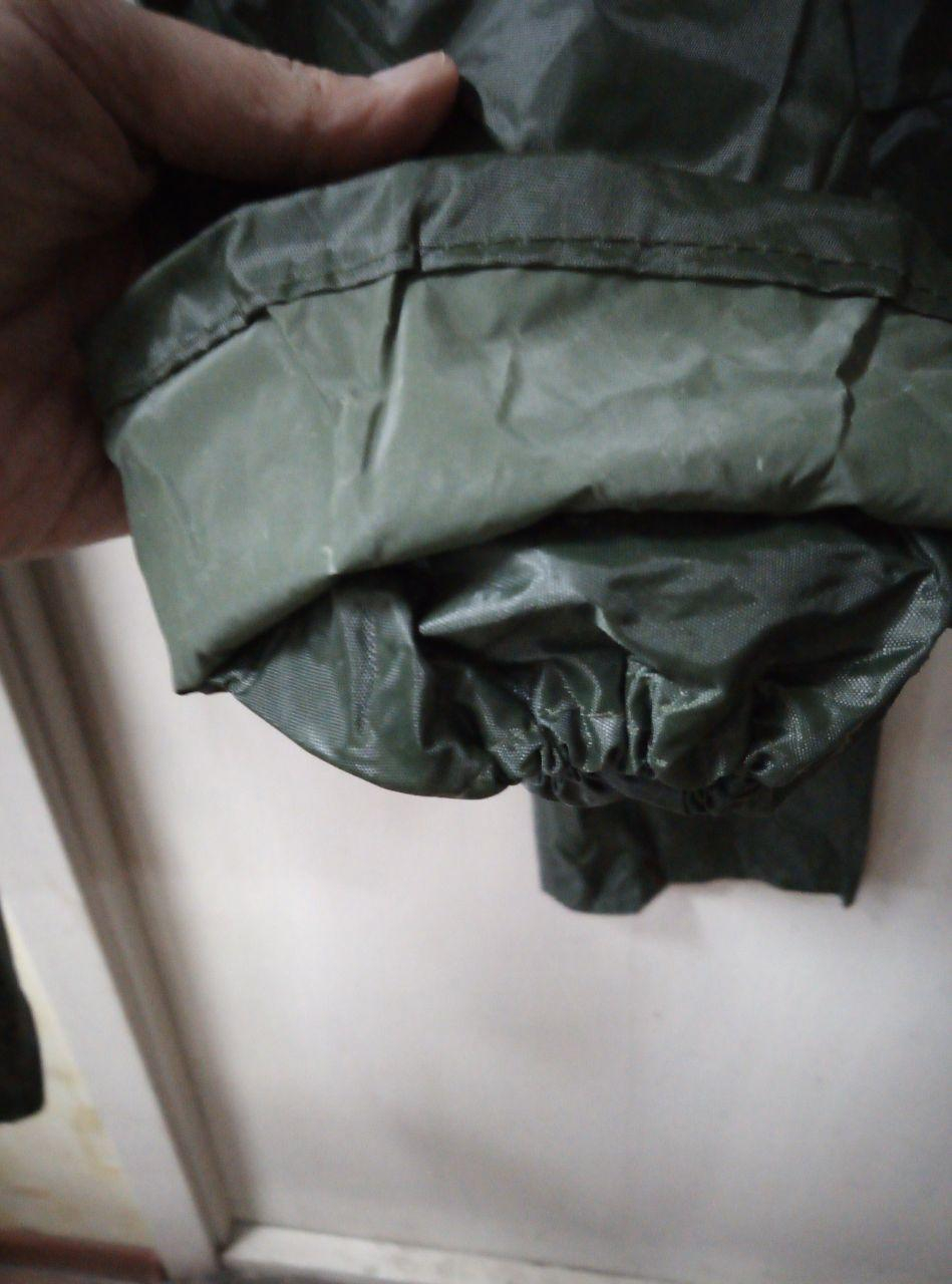 Комплект ПВХ вологостійкий. Матеріал нейлон +ПВХ. Колір темно-зелений. Куртка з каптуром, що ховається в комір, рукав прямий ,всередені з напульсником на різинці. Є дві бокові прорізні кишені, закриті клапаном. Пояс штанів на еластичній стрічці. Для підгонки росту є кнопка внизу штанини. Шви прошиті та проклеєні. Застібка куртки - блискавка, з вітрозахисним клапаном, пришитим з середини. Індивідуальна упаковка.