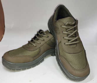 Кросівки з натуральної шкіри Нубук, вставки з повітропроникного матеріалу КОРДУРА. Вставна устілка з ефектом амортизації, з матеріалу ЕВА. Жорсткий закаблук, термопластичний підносок (надмір. 2 мм). Підошва з поліуретану підвищеної зносостійкості, з властивостями МБС. t експлуатації — 15 +90 С.