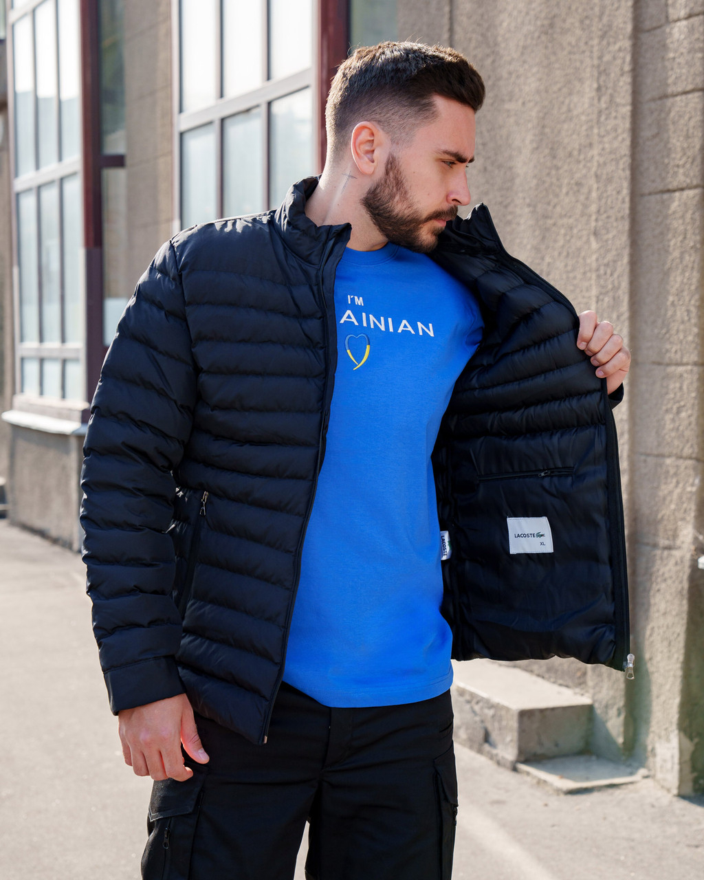 Куртка чоловіча стьобана демісезонна ТМ Lacoste. ЧОРНАЯр.S, L , М, ХL, ХХL