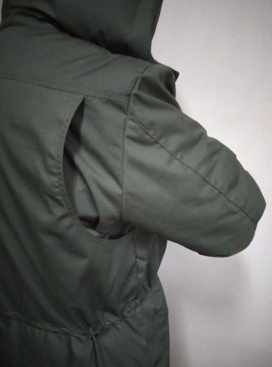 Куртка утеплена подовжена, зі знімним капюшоном. Застібка — блискавка, закрита пластроном. Є 4 прорізні кишені на блискавці ( дві нагрудні, 2 бічні), закриті складкою-клапаном. Рукав куртки прямий, з внутрішнім напульсником із флісу. Високий комір-стійка. Капюшон знімний, на блискавці.На талії розташована куліса для регулювання обсягу. Спинка та полиці — з відрізною кокеткою. На спинці під кокеткою прокладені  глибокі склади для свободи руху. Довжина куртки  трохи нижче середини стегна. На лівому рукаві  є панель велкро для кріплення шеврона.