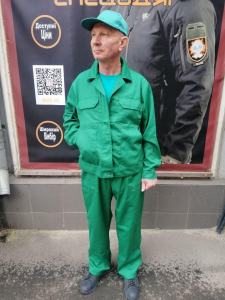 Куртка робоча літня слугуватиме чудовим спецодяганням для працівників комунальних підприємств із упорядкування міста, паркових зон, садів, городів. Комір відкладний. Застібка потайна, на ґудзиках. Пояс куртки регулюється патами на ґудзиках. Куртка має 2 великі бічні накладні кишені та 2 нагрудні з клапанами на липучці. Виріб виконаний з тк. САРЖА, невеликої щільності (200 гм2) Склад змішувальний, 65% сече/35%хб. У комплекті зі штанами з такої ж тканини виходить повноцінний робочий костюм.