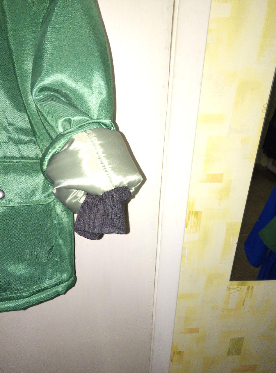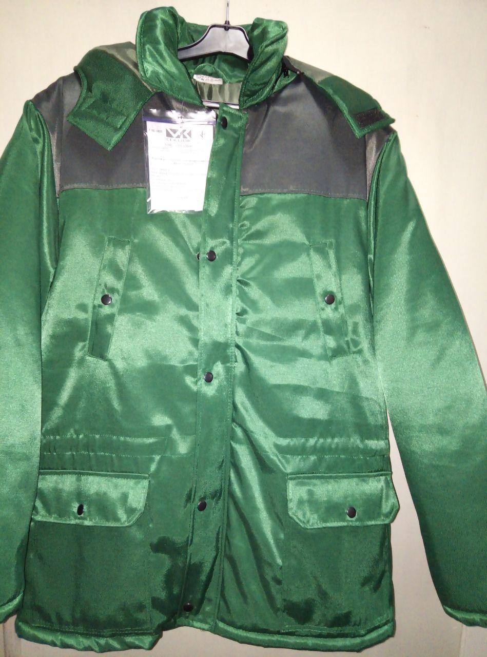 Тканина верху ОРТОН з ВО просоченням, 60%pe/40%хб, основний колір ЗЕЛЕНИЙ (пляшковий), обробка — СЕРА (Асфальт) — кокетки (спинка, грудь). Утеплювач — синтепон 300 гм2 — спинка, груди, синтепон 200 гм2 — рукави.