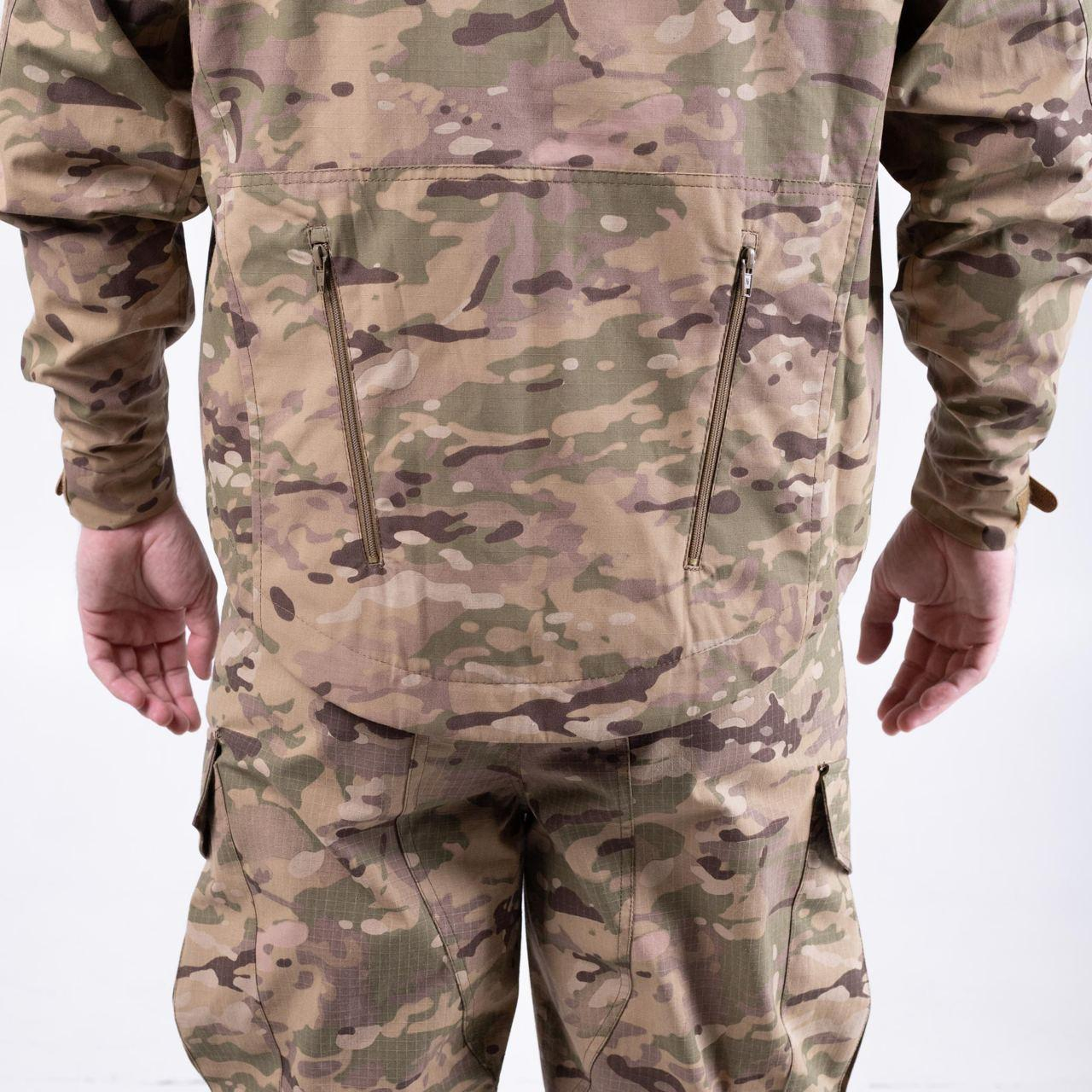 Тактична куртка-штормівка виготовлена зі щільної, міцної на розрив тканини з ВО-просоченням. Підходить для використання у вологих погодних умовах. Застібається на застібку-блискавку, утворюючи комір-стійку. Об'єм капюшона регулюється за допомогою шнура та фіксаторів. У конструкції капюшона передбачений короткий козирок. На передній частині розташовані вертикальні кишені на рівні грудей. Також кишені є на обох рукавах і на спинці куртки в поперековій зоні. Ширина рукава регулюється патою на липучці. У комплекті зі штанами з такої ж тканини утворює костюм.