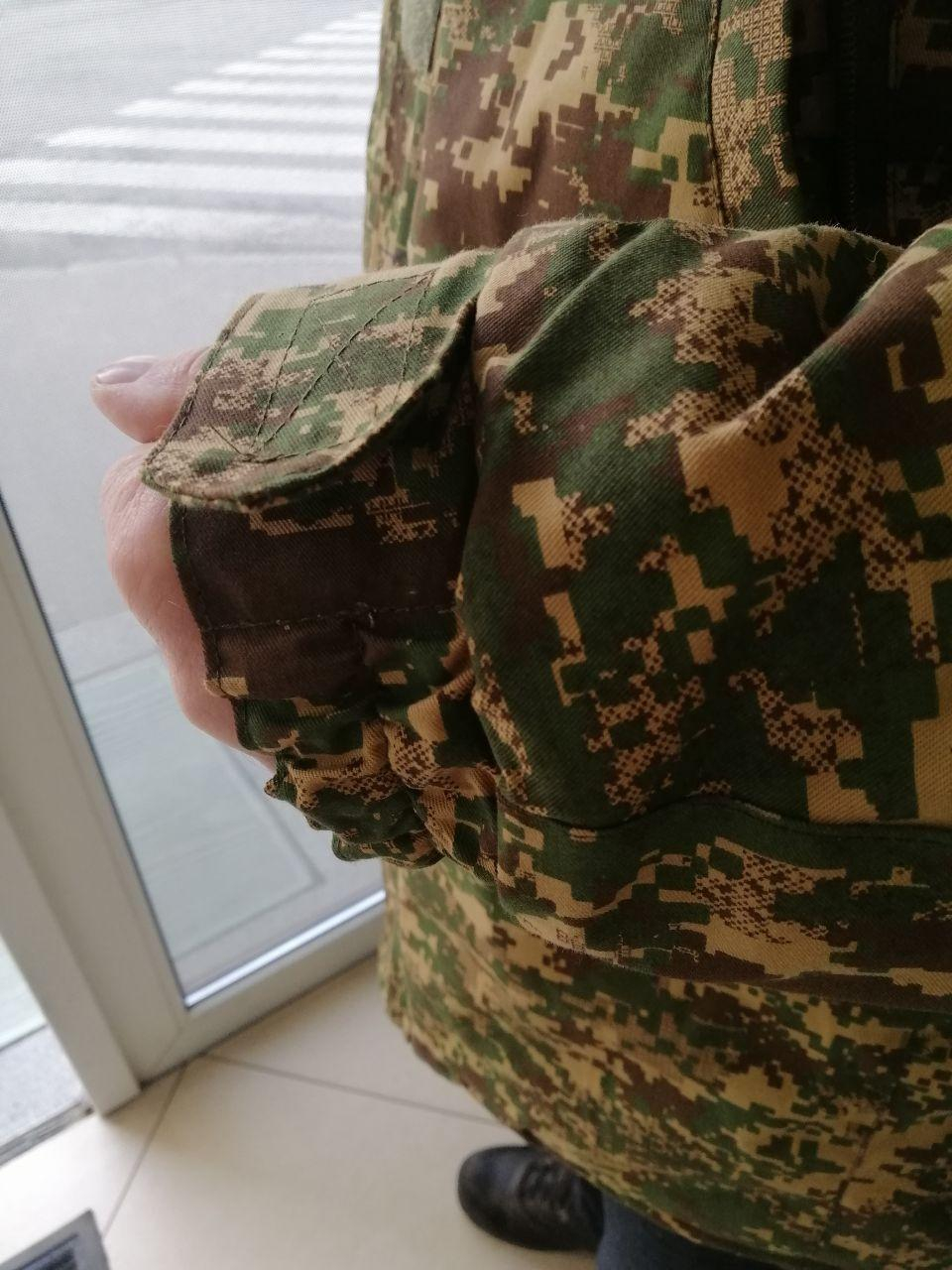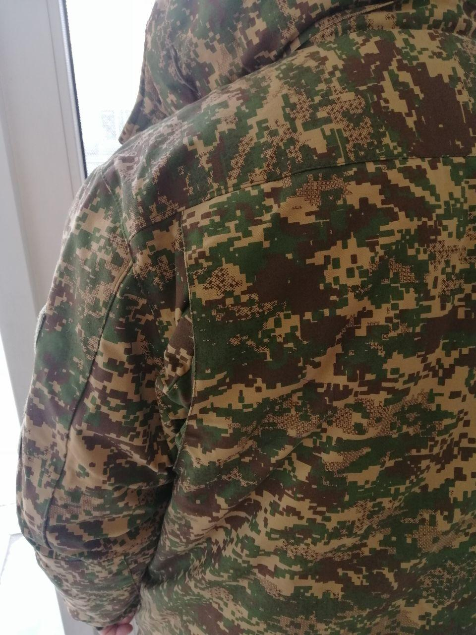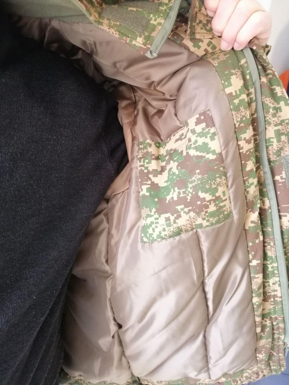 Куртка прямого крою, з подовженою спинкою. Рукави вшивні, з манжетом на гумці та з регульованою шириною патою. Є вертикальні прорізні кишені на блискавці на рівні грудей і рукавах. Панелі велкро на двох рукавах і грудях. Комір-стійка з флісом зсередини. Капюшон утеплений глибокий, у формі шолома, що відстібається,. На рукавах є підсилювальні накладки. Ширина куртки внизу регулюється куліскою Тканина верху: САРЖА 65хб/35пе, пл. 240 гм2, з водостійким просоченням. Утеплювач: 2 шари шерстепону, пл. 200 гм2 ( термоефективніший, ніж синтепон, але водночас тонший і еластичніший), що робить виріб менш громіздким. Підкладка куртки фольгований OMNI-HEAT, зверху армований за допомогою звичайної поліестерної підкладки.