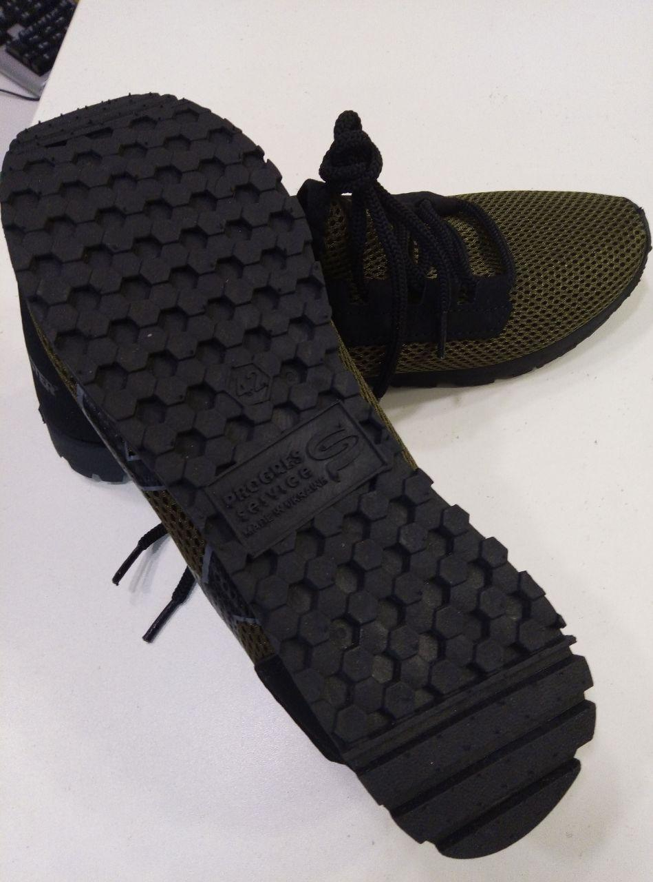 Матеріал верху — міцна повітропроникна сітка. Колір ОЛІВА. Підошва-гума. Антиковзна. Високий рівень повітропроникності. Анатомічна устілка. Надзвичайно легкі та зручні.