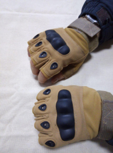 Перчатки без пальців тактичні. Колір: Койот. Матеріал комбінований: мікрофібра,нейлон,полістер. Гумовий захист пальців і суглобів. Пальці з боку долоні посилені додатковою антиковзаючою вставкою. Застібка з хорошою фіксацією на зап'ясті.