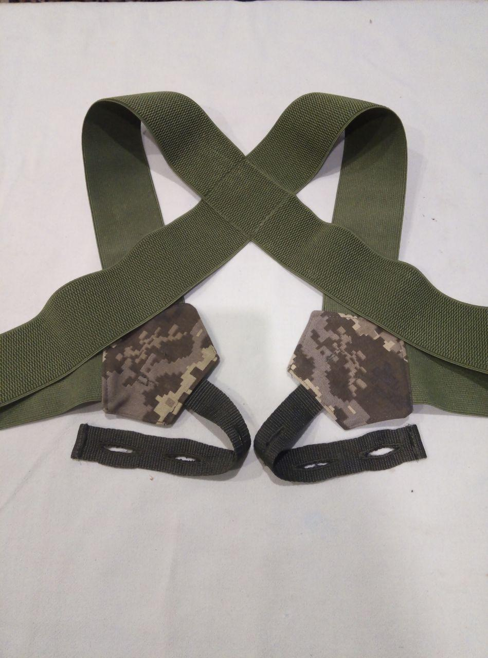 Підтяжки для військовослужбовців виконані з щільної якісної резинки завширшки 6 см, що має рифлену структуру. Завдяки ширині резинки лямки не врізаються й не перекручуються. Довжина регулюється за допомогою двох щільних шльовок із трьома петлями, які чіпляються спереду за брючний ремінь і застібаються на ґудзики на "ножках".