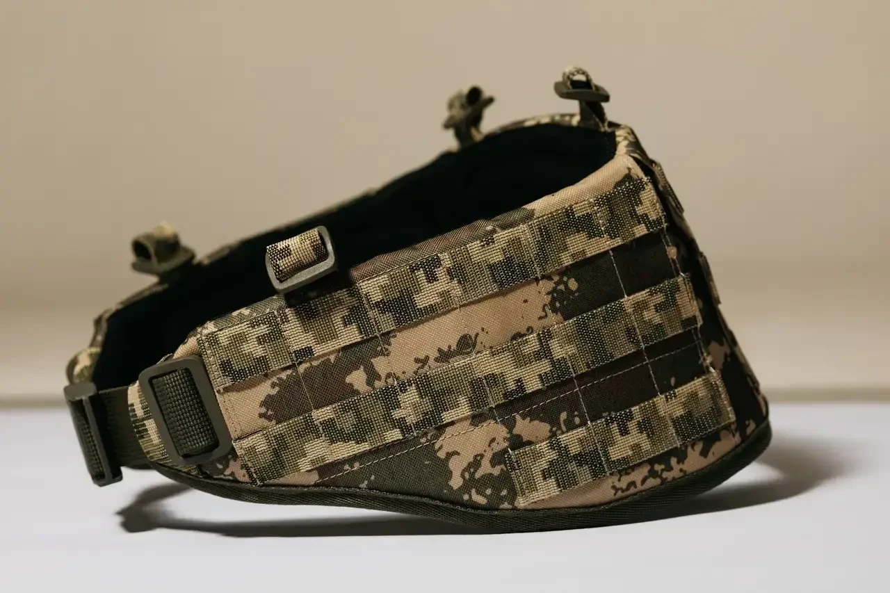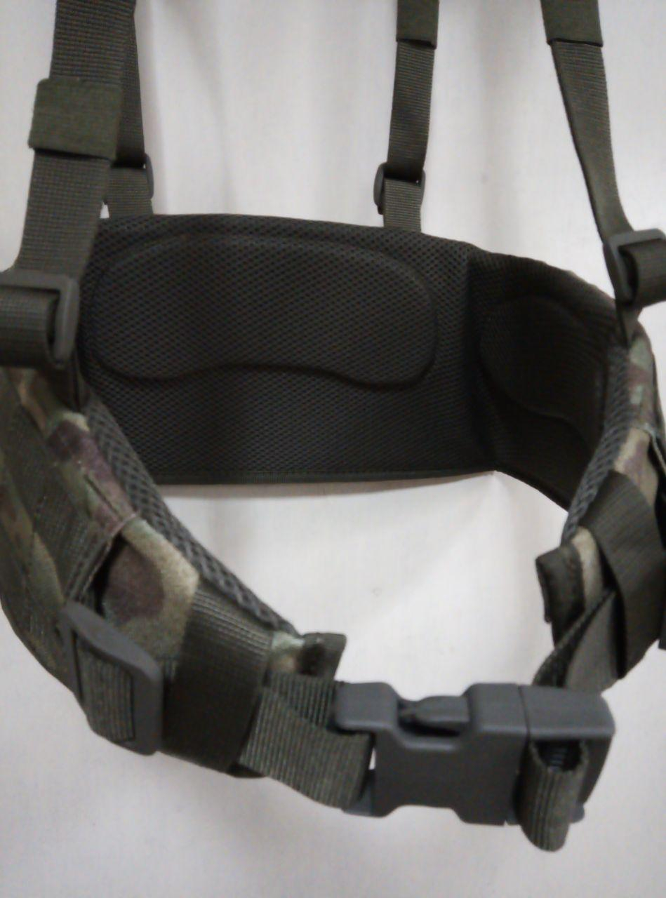 Ремінно-плечова система КАЖАН складається з розвантажувального пояса та підтримувальних плечових лямок Виготовлена з тканини КОРДУРА. Має анатомічну форму, що забезпечує необхідний комфорт під час руху. З внутрішньої сторони передбачені вставки зі спіненого матеріалу та сітки, що знижує стискання й забезпечує гарну вентиляцію. Плечові лямки легко кріпляться до пояса за допомогою додаткових пряжок. Пояс використовується як розвантажувальна РПС.