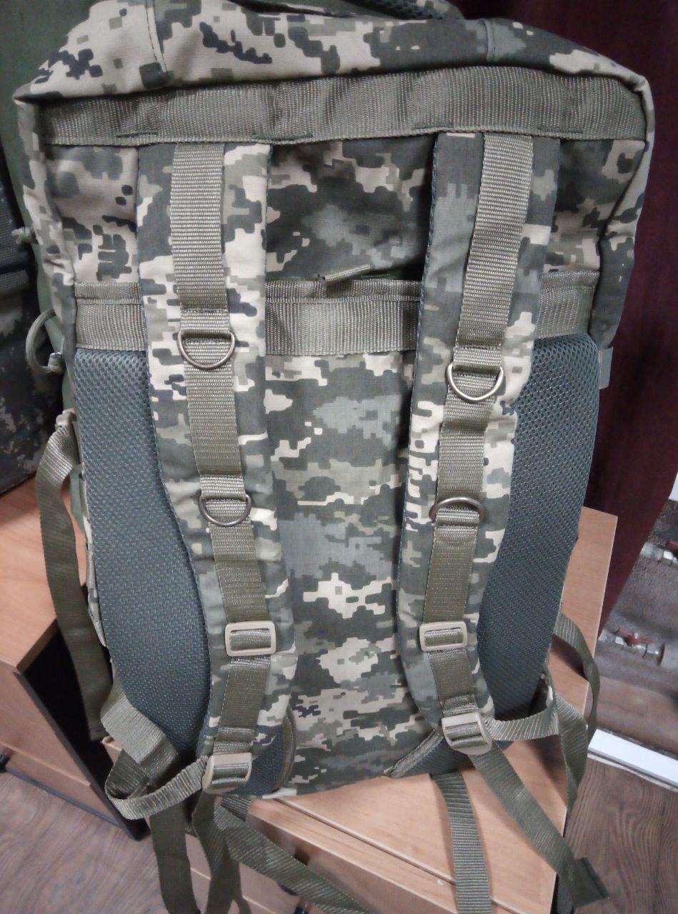 Рюкзак бойовий великого об'єму виявляється корисним під час виконання завдань, що займають кілька днів. Такий об'єм дає можливість розмістити необхідний запас продуктів, води, запасний комплект одягу та боєкомплекту.Тканина Кордура 600Д-св. Об'єм 85 л. Розмір 54х35х30. Має щільну підкладку, що не пропускає вологу та надає жорсткість конструкції. Має одне основне відділення, велика внутрішня кишеня на задній стінці, яка фіксується липучкою велкро, а також два пропорційні відділення на блискавках. Для максимального комфорту на спинці розміщені три еластичні накладки, які формують енергоміцну форму спинки рюкзака. Також є окремо нашиті стропи для кріплення різних скаток (спальник, каремат та ін.).