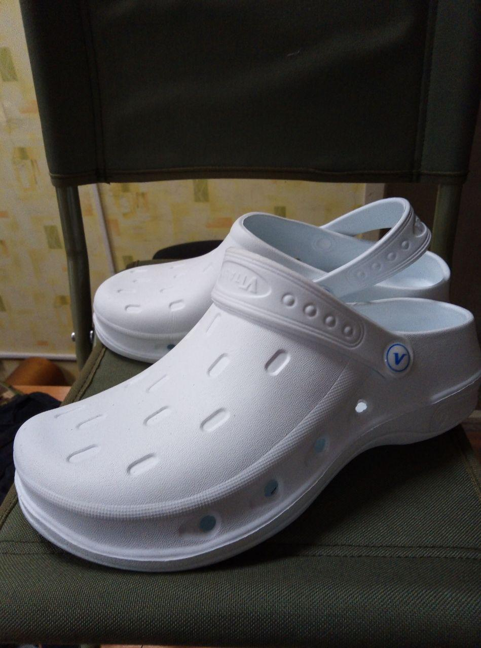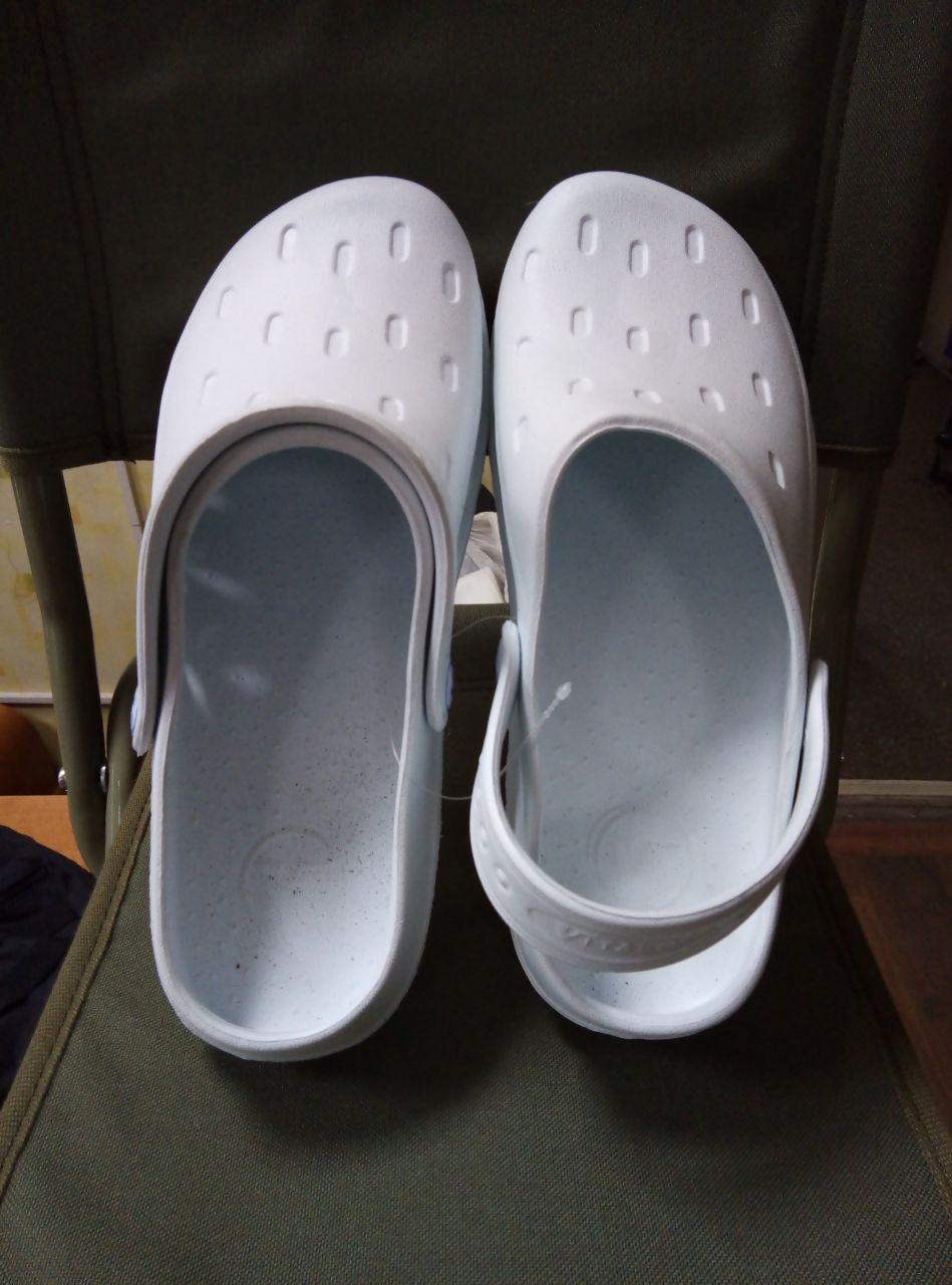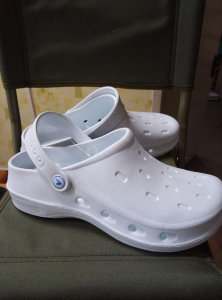 Цільнолиті сабо. Виготовлені з високоякісного полімерного матеріалу ЕВА. Надлегкі та комфортні. Союзка з перфорацією з бокової частини. Мають фіксуючий п'яточний ремінець. Ходова поверхня з антиковзаючою накладкою, з властивостями "антимаркер".