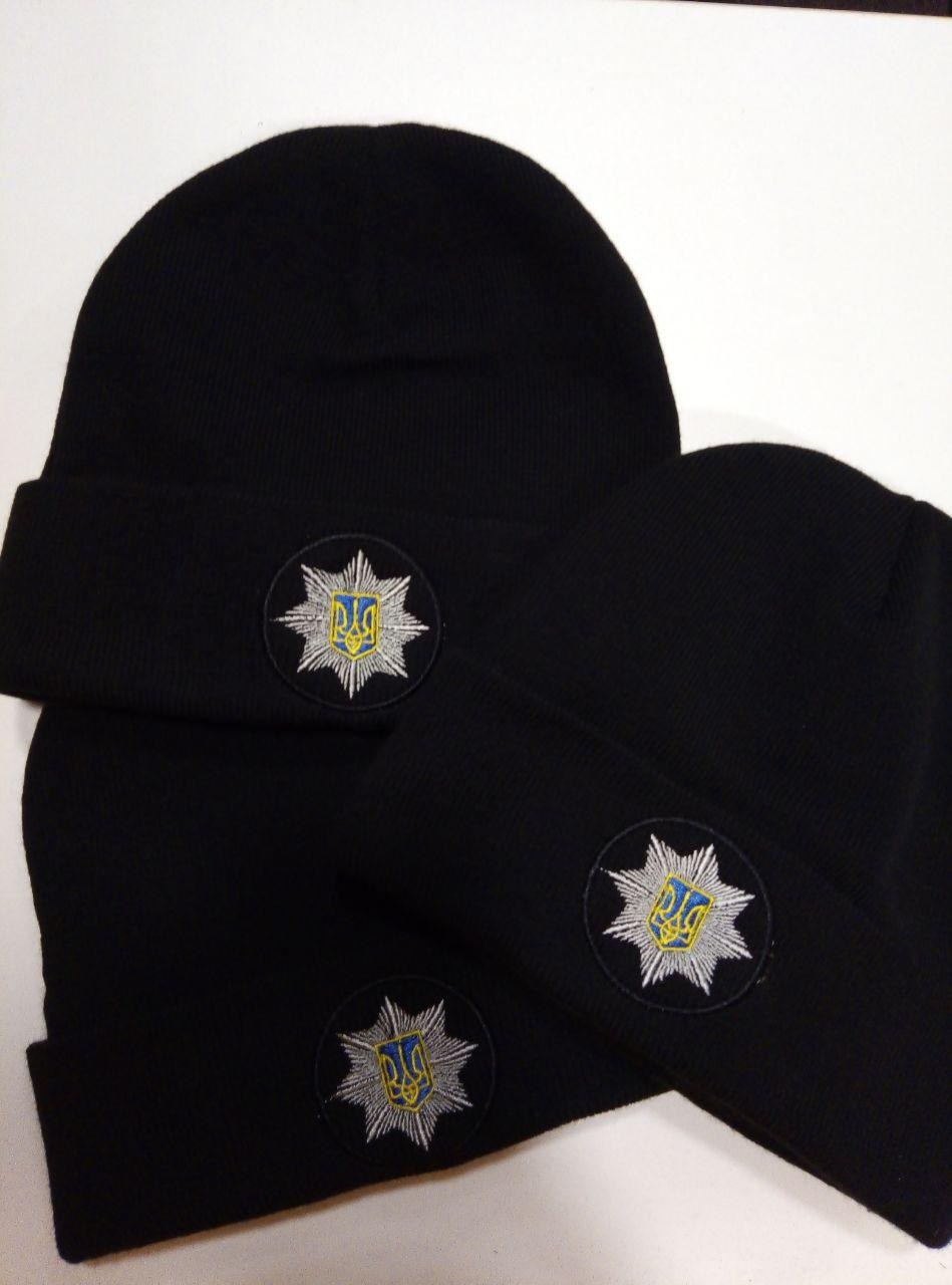 Шапка зимова в'язана ЧОРНА для поліції, з кокардою , р.універсальний