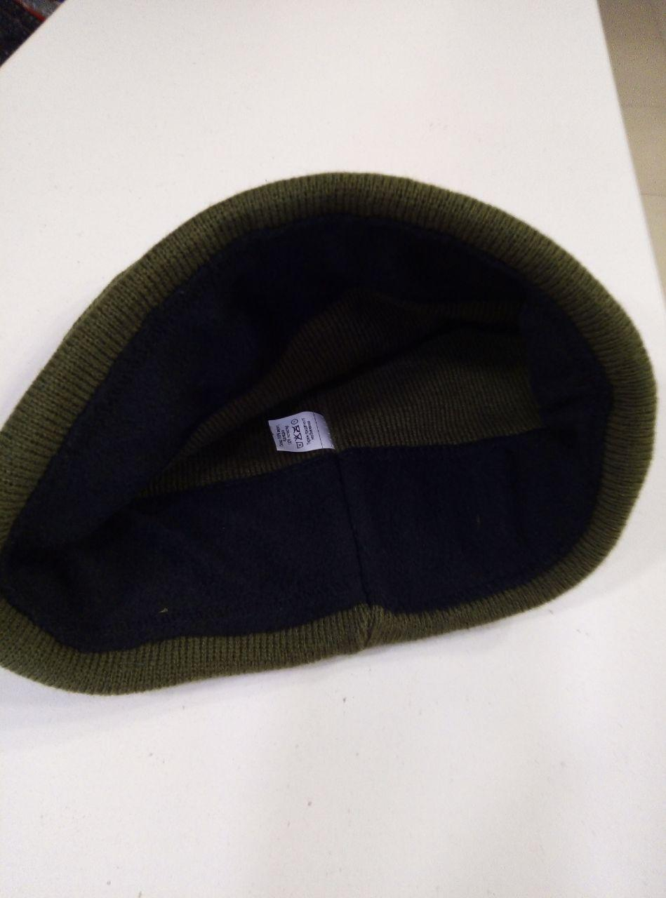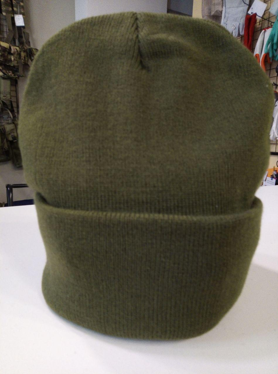 Шапка зимова, подвійне в'язання, із закотом. Матеріал - акрил. Підкладка флісова на рівні чола. Колір ОЛИВА Розмір універсальний.