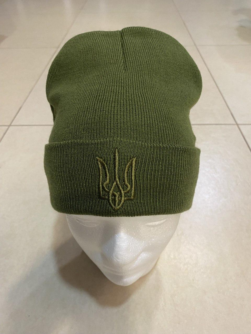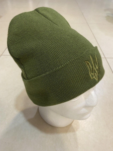 Шапка зимова в,язана ОЛИВА з вишивкою "Тризуб", р.універсальний