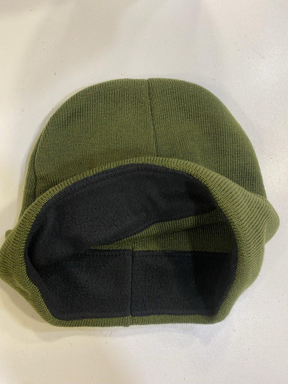 Шапка зимова, подвійної в,язки, з відворотом.На рівні чола настрочена утеплююча підкладка з флісу. Матеріал - акрил. Колір ОЛИВА. Розмір універсальний.