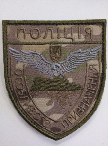 Шеврон ПОЛІЦІЯ ОСОБЛИВОГО ПРИЗНАЧЕННЯ на мультікамі, р. 8.5 х 7 см