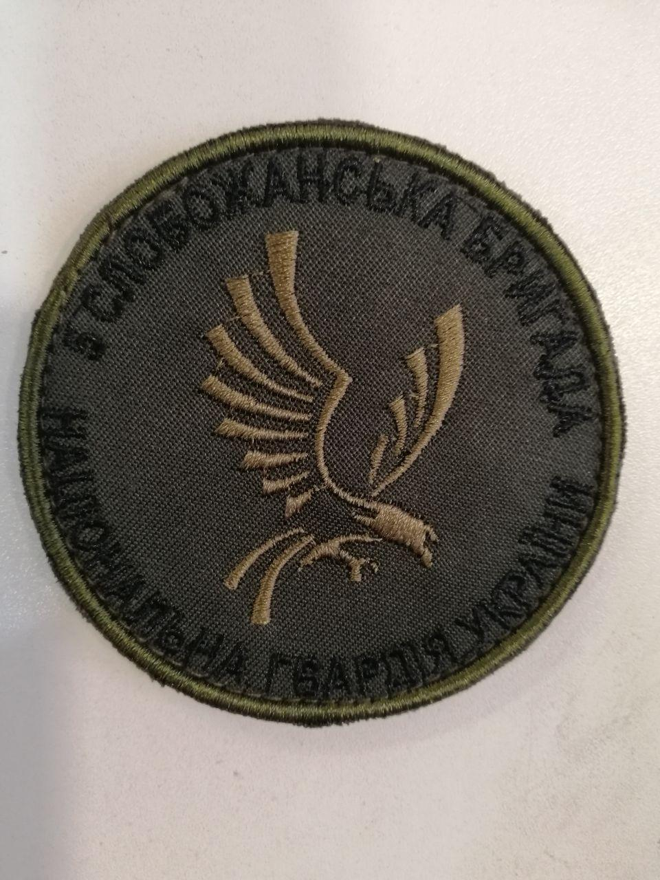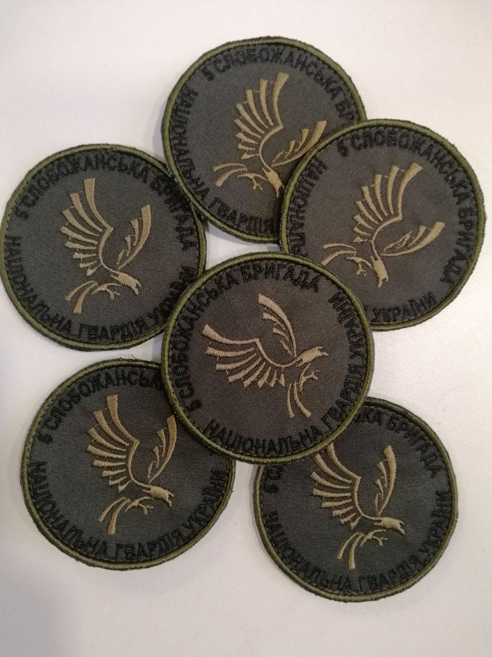 Шеврон вишитий 5 СЛОБОЖАНСЬКА БРИГАДА НГУ круглий, фон хакі