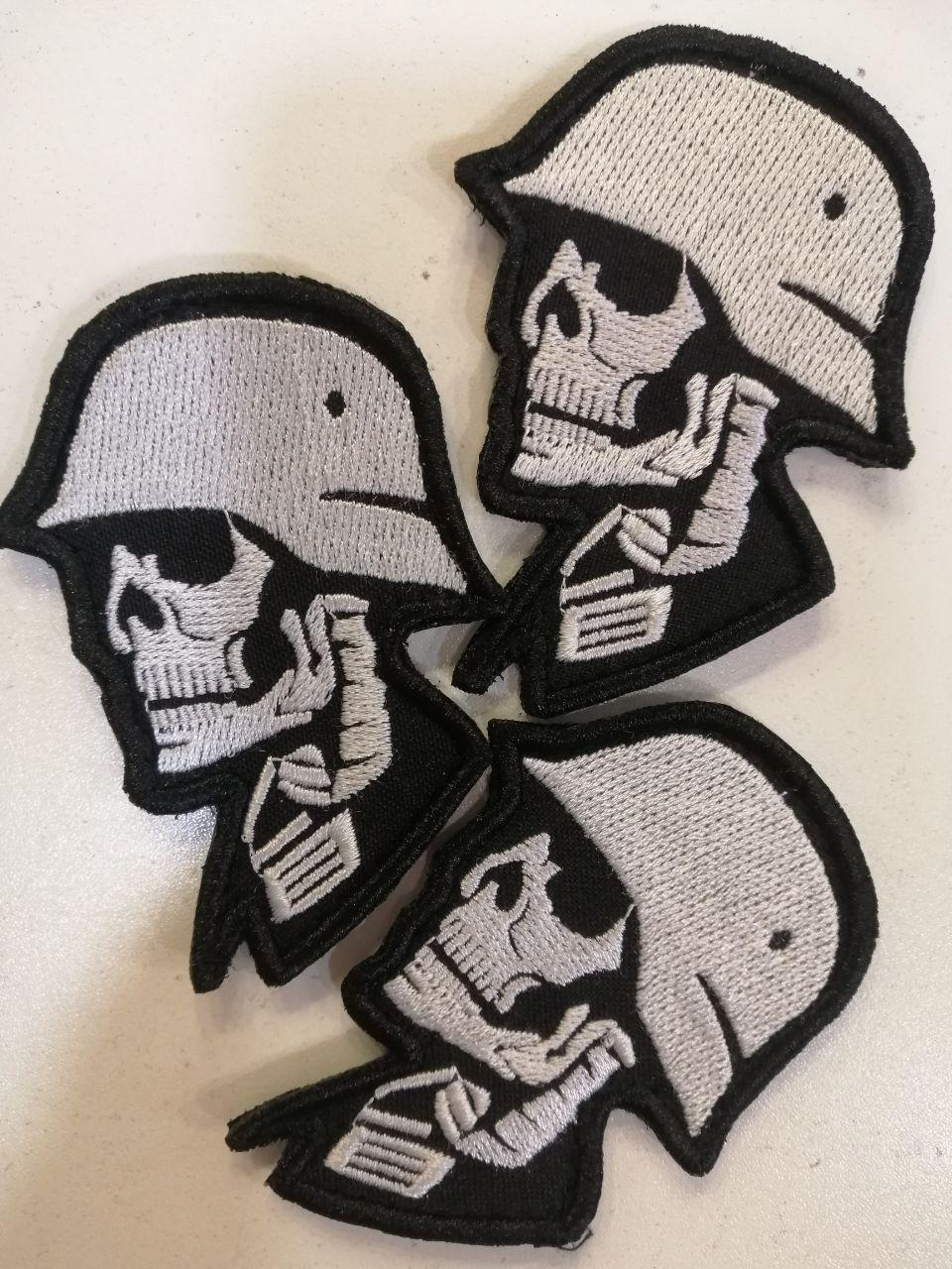 Шеврон ЧЕРЕП В КАСЦІ . Кольори : чорно-білий. Кріплення на липучці.