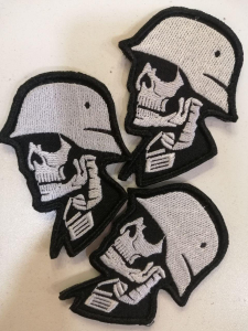 Шеврон вишитий ЧЕРЕП В КАСЦІ, чорно-білий, р. 8.5 х 6.0