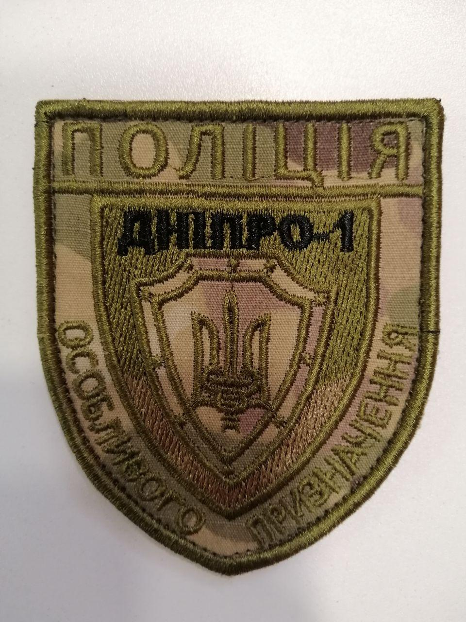 Шеврон вишитий ДНІПРО-1 ПОЛІЦІЯ Особливого Призначення. Фон: мультикам. Кріплення на липучці.