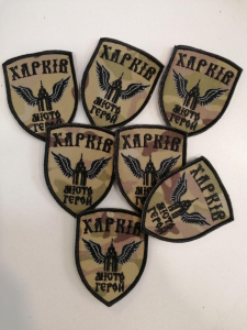 Шеврон вишитий нарукавний ХАРКІВ-МІСТО ГЕРОЙ. Кріплення на липучці. Фон мультикам.