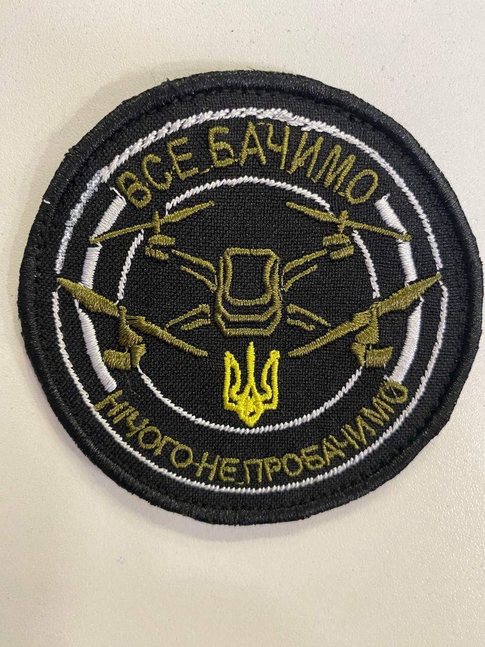 Шеврон вишитий ОПЕРАТОРА ДРОНА "Все бачимо...." фон чорный, р.8х8