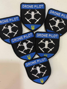Шеврон вишитий ПІЛОТ ДРОНА (англ) фон чорный, р.6.5 х 8