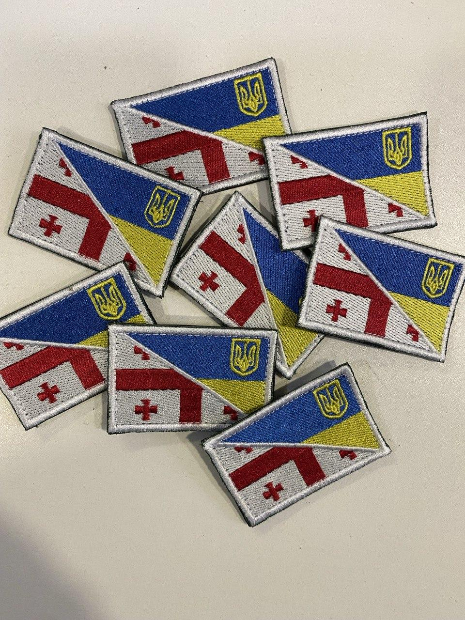 Шеврон вишитий ПРАПОР УКРАЇНА-ГРУЗІЯ. Кріплення на липучці.
