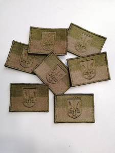 Шеврон вишитий ПРАПОР УКРАЇНИ ПОЛЬОВИЙ, кол. олива, р. 7х5 см - фото