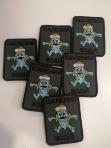 Шеврон нарукавний  ШАЛЕНИЙ ВОДІЙ.  Кріплення на липучці.