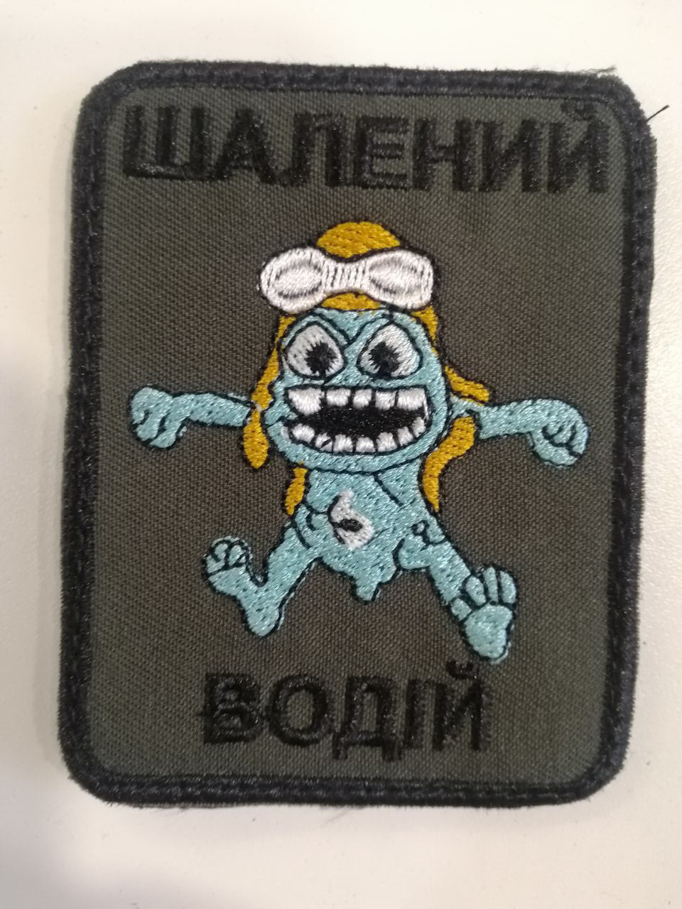 Шеврон вишитий  ШАЛЕНИЙ  ВОДІЙ , фон хакі, р. 6.5х8.5 - фото