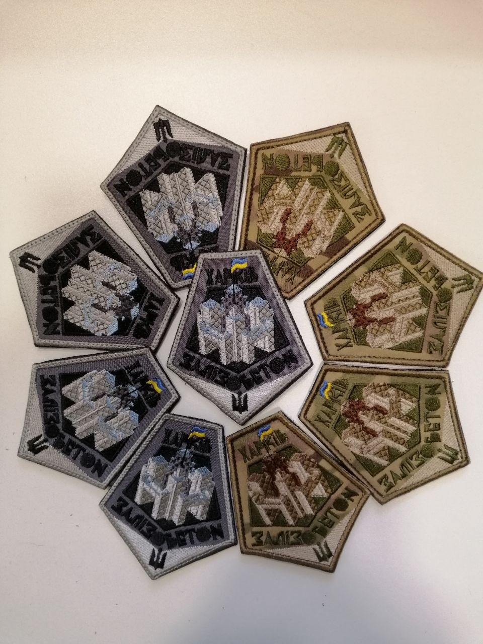 Шеврон  вишитый  ХАРКІВ -ЗАЛІЗОБЕТОН ( в двох кольорах :  олива, серо-чорний) - фото