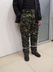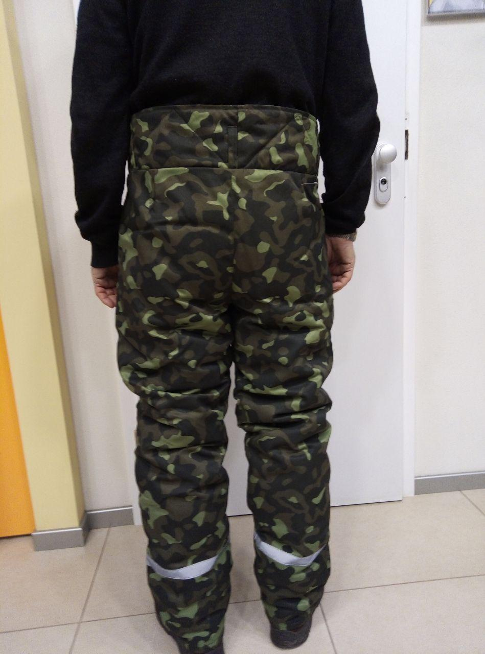 Штани утеплені, прямого крою. Мають 2 накладні кишені. Гульфик на гудзиках. Високий пояс захищає спину від холоду.