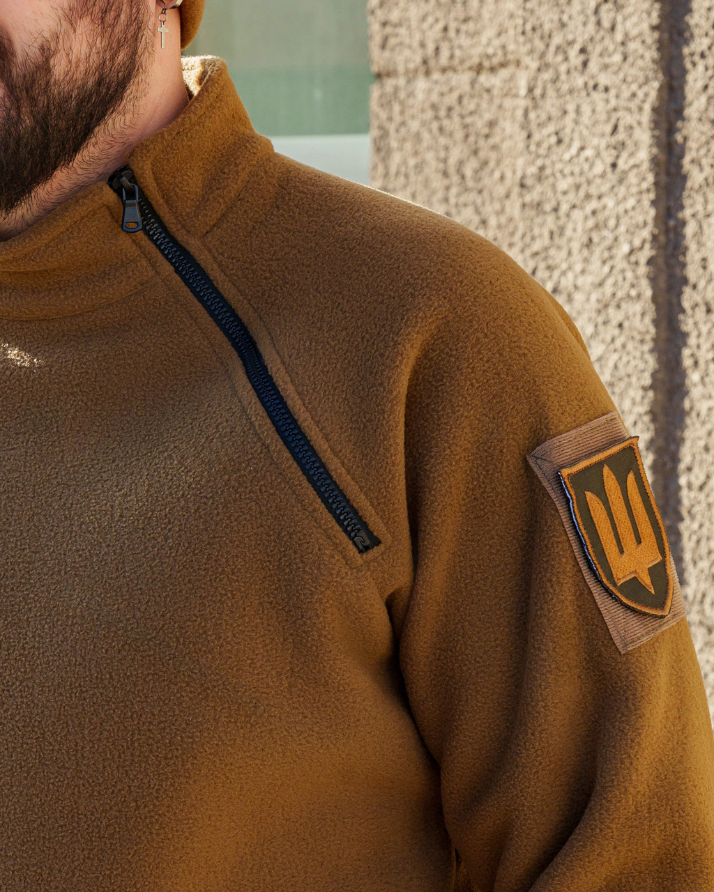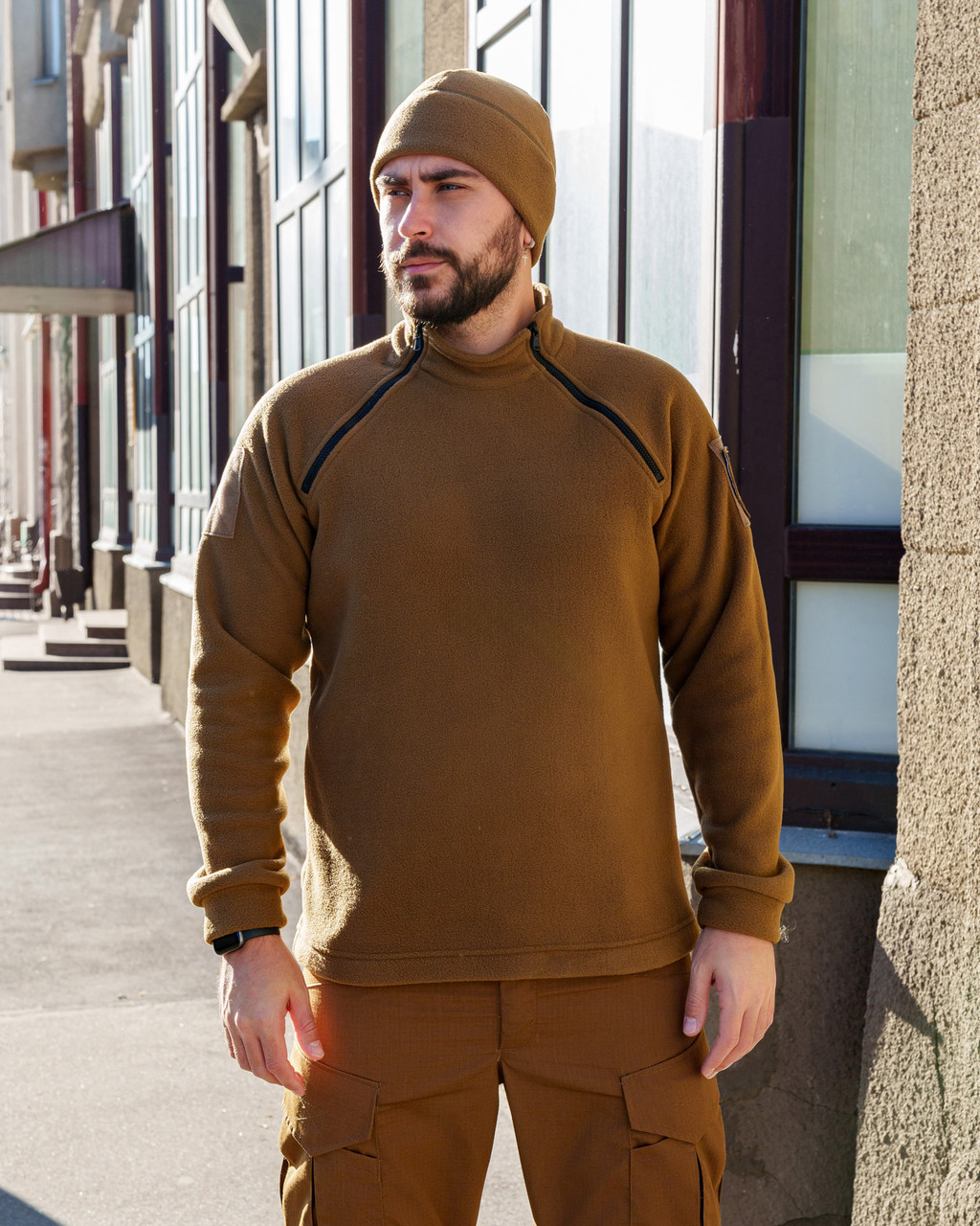 Сорочка з флісу з застібками на дві блискавки в області плечей.Колір КОЙОТ. Дуже м'який фліс, приємний до тіла, щільність 300 гм2. На обох рукавах розташовані панелі велкро для шевронів.