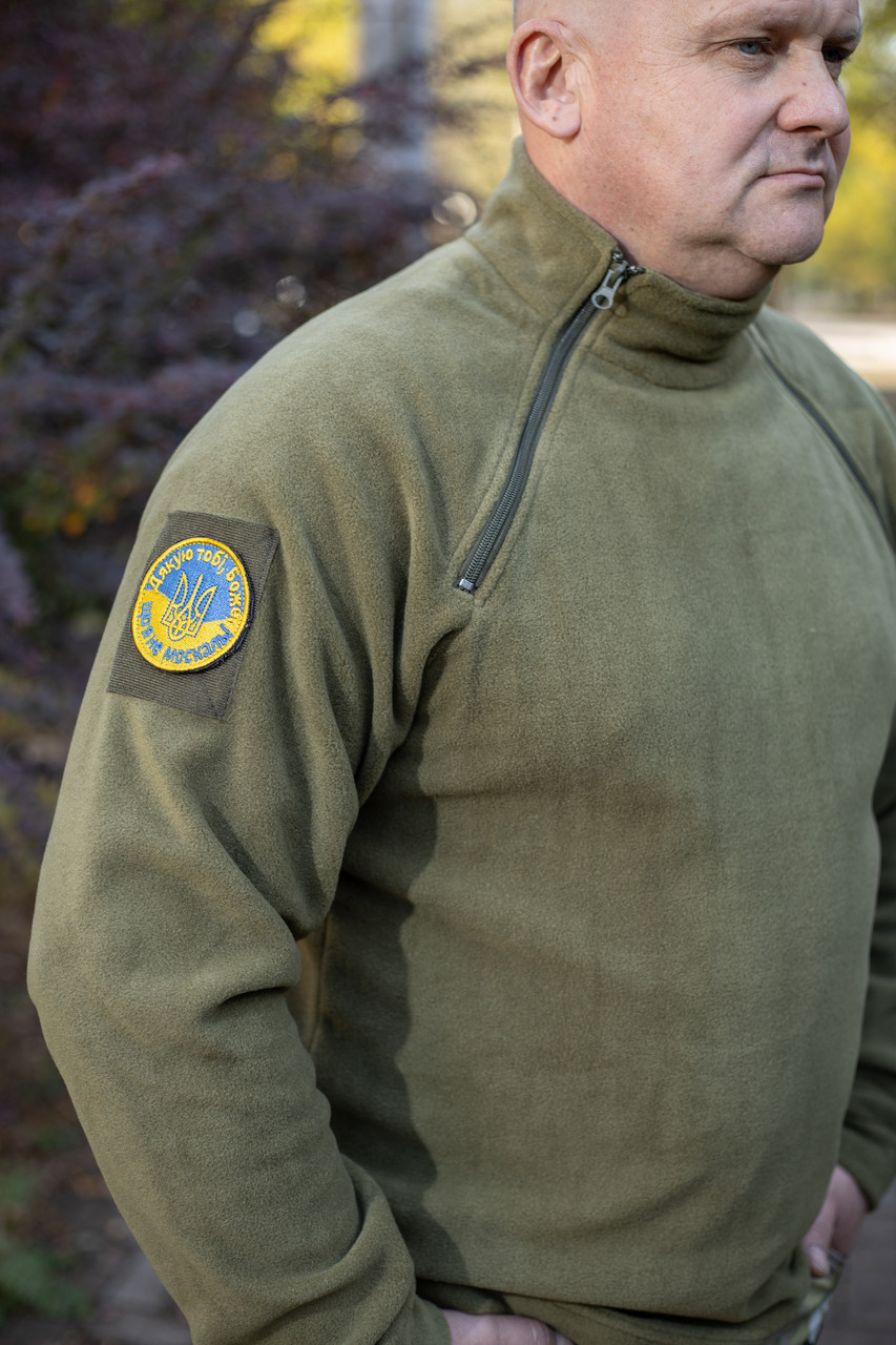 Сорочка флісова з двома застібками на блискавку в області плечей. Колір ОЛИВА. Дуже м,який фліс, приємний до тіла, щільн. 300 гм2. На обох рукавах нашиті панелі велкро для шевронів.