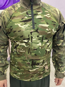 Сорочка тактична з довгим рукавом. Спинка, груди, внутрішня частина рукава — м'яка повітропроникна тканина сітчастої фактури-COOLMAX, мал.МУЛЬТІКАМ. Рукави, плечі, комір — тк.РІП-СТОП 100% бавовна, невеликої щільністі, забарвлення МУЛЬТІКАМ. Комір-стійка на блискавці. На рукавах є тактичні кишені на блискавках та панелі велкро для шевронів. Манжет на липучці.