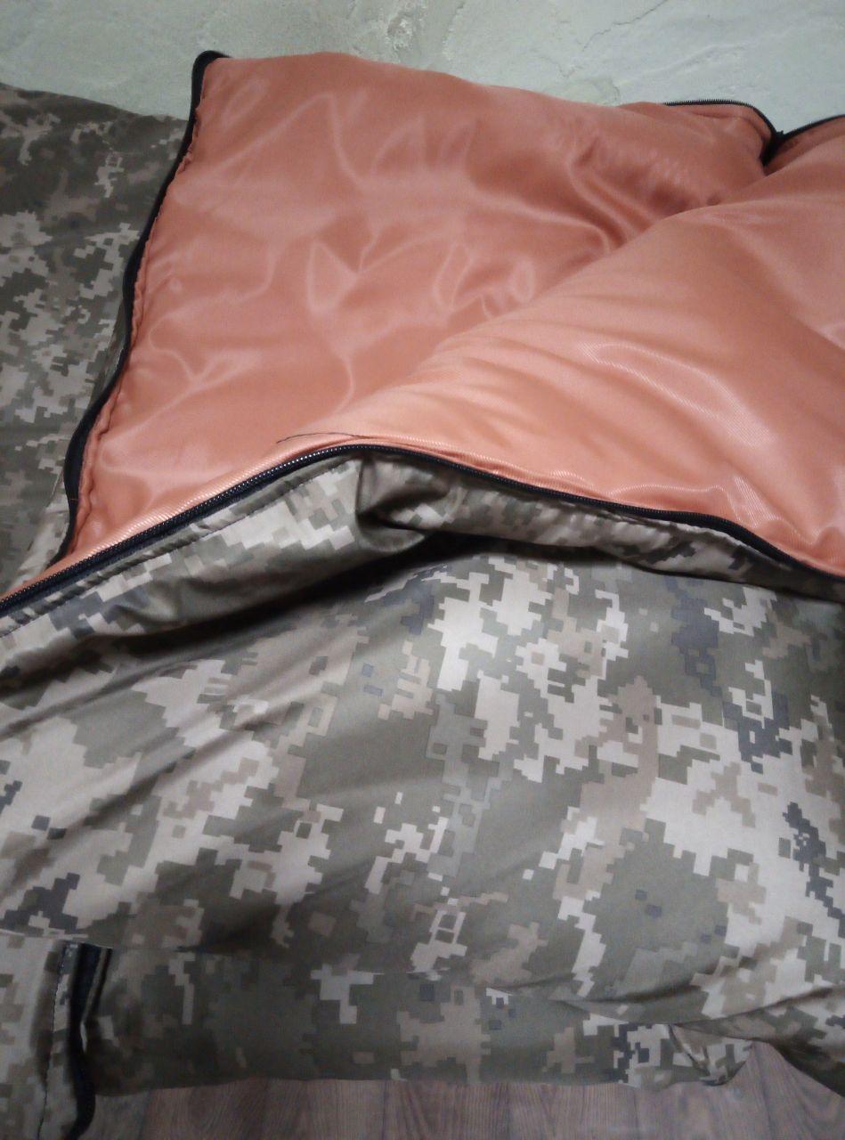 Мішок спальний багатофукціональний .Тк. ОКСФОРД 420Д малюнок КАМУФЛЯЖ. Розмір 70х200. Утеплювач - синтепон 400 гм2. В розгорнутому вигляді можна використовувати як ковдру, складений навпіл слугує карематом. При складанні одного з кутів у вигляді конверта перетворюється в спальник з каптуром. Температурный режим до -8С. Завдяки водостійкому просоченню тканини та штучному утеплювачу мішок швидко висихає при намоканні. Забруднення легко видаляються за допомогою вологої губки, без прання.