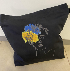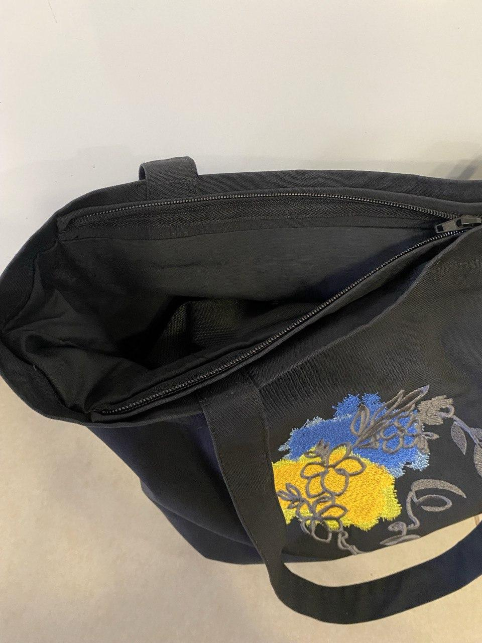СУМКА-ШОПЕР на блискавці и підкладці "ДІВЧИНА У ВІНОЧКУ" р. 46х43 см