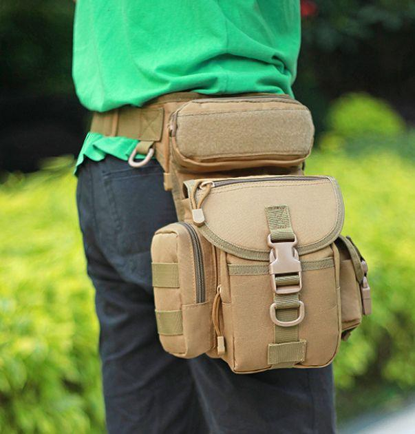 Сумка тактична на стегно.Тканина ОКСФОРД 100% пе. Є велике одне відділення + об'ємна кишеня на блискавці, спереду, і по 2 додаткові кишені з боків. "Язик" і задня панель також забезпечені кишенями для необ'ємних речей. Ремінь 4 см, фастекси для швидкого зняття.. Спереду — 2 платформи велкро для кріплення патчів. Об'єм — на 6 л. Забарвлення: КОЙот, ОЛИВА, ЧОРНИЙ.