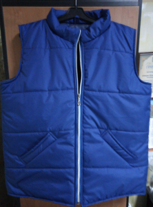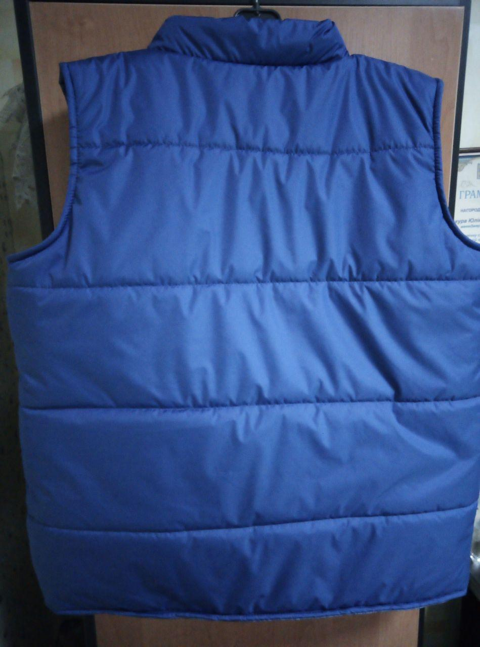Жилет утеплений (чоловічий/жіночий) . Комір-стійка, кишені-листочки, довжина до середини стегна, застібка-блискавка. Тканина верху -плащева ДЮСПО, утеплювач - синтепон 200 гм2. Колір - ЕЛЕКТРИК.